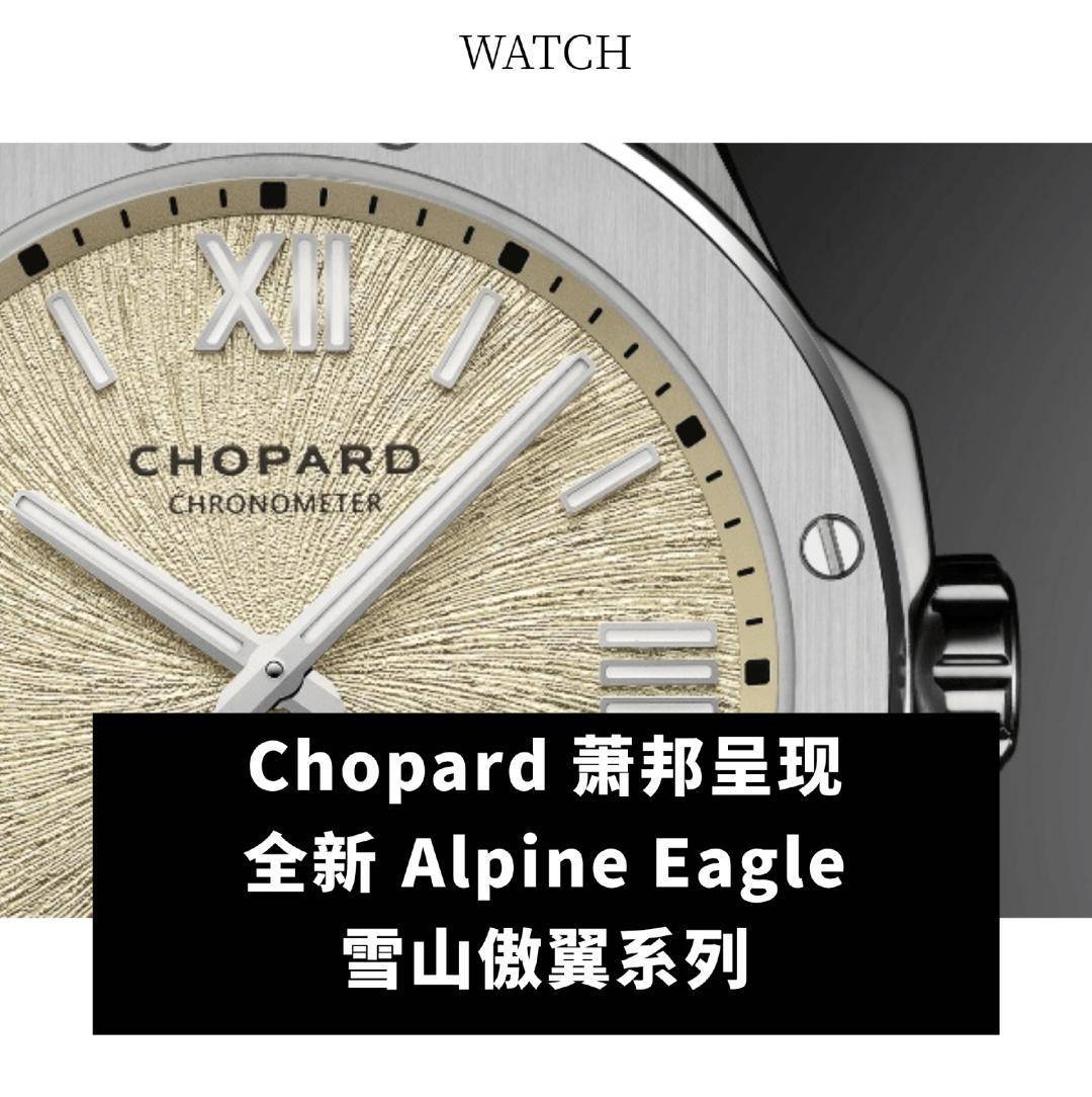 新作搭配全新“雪岭金”色表盘:细腻的香槟色调生动再现清晨第一缕柔和的晨光,轻柔洒落于阿尔卑斯雪山之巅的胜景。表盘饰以灵感源自鹰眼虹膜的放射状纹理,赋予盘面深邃质感与蓬勃生机;时标、数字及指针均采用符合 Chopard 萧邦可持续发展和社会责任理念的白金打造,并覆以 Super-Luminova® Grade X1 荧光涂层,确保其在各种环境下皆可清晰读时。(Lenu)