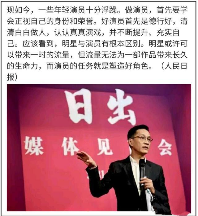 面对如今连剧本都读不懂、人物小传都不会写的流量明星,他那句“怒其不争”包含了多少无奈。