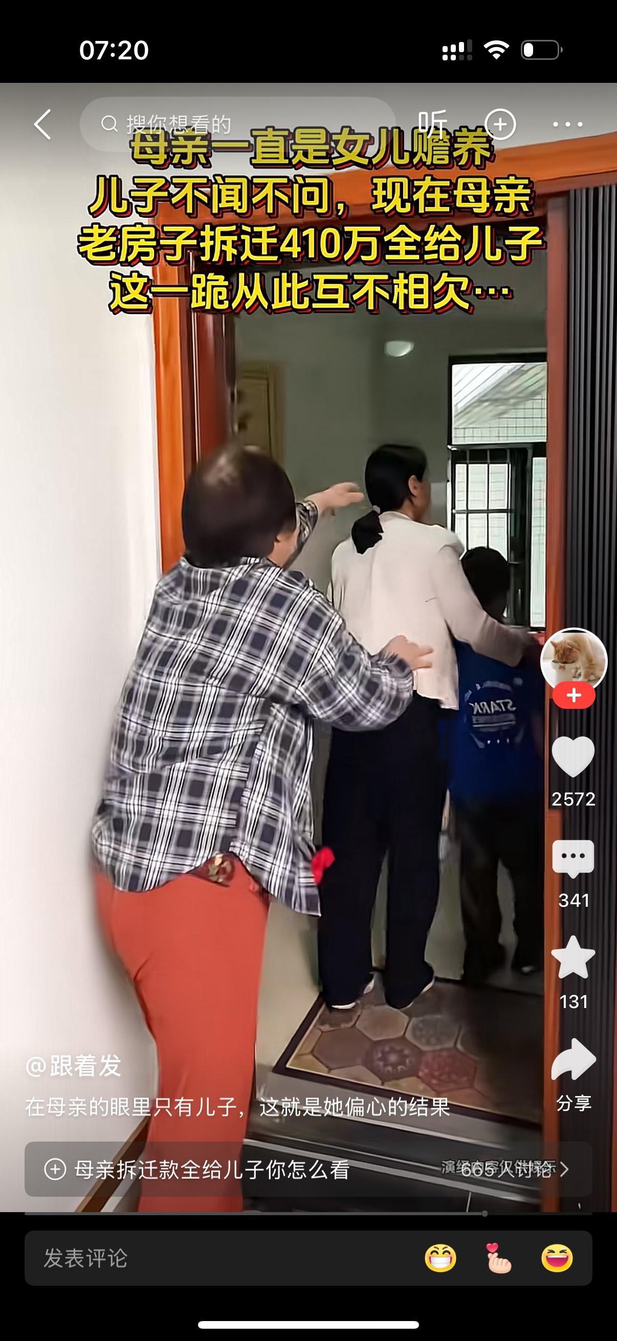 这一幕,被邻居用手机拍了下来,传到了网上,瞬间引发了全网热议。有人说林秀琴太绝情,毕竟是亲生母亲,就算再偏心,也不该断绝关系;也有人说,是母亲的偏心伤透了女儿的心,换作是谁,都会做出同样的选择。而这一切的导火索,是母亲老房子拆迁的410万补偿款。