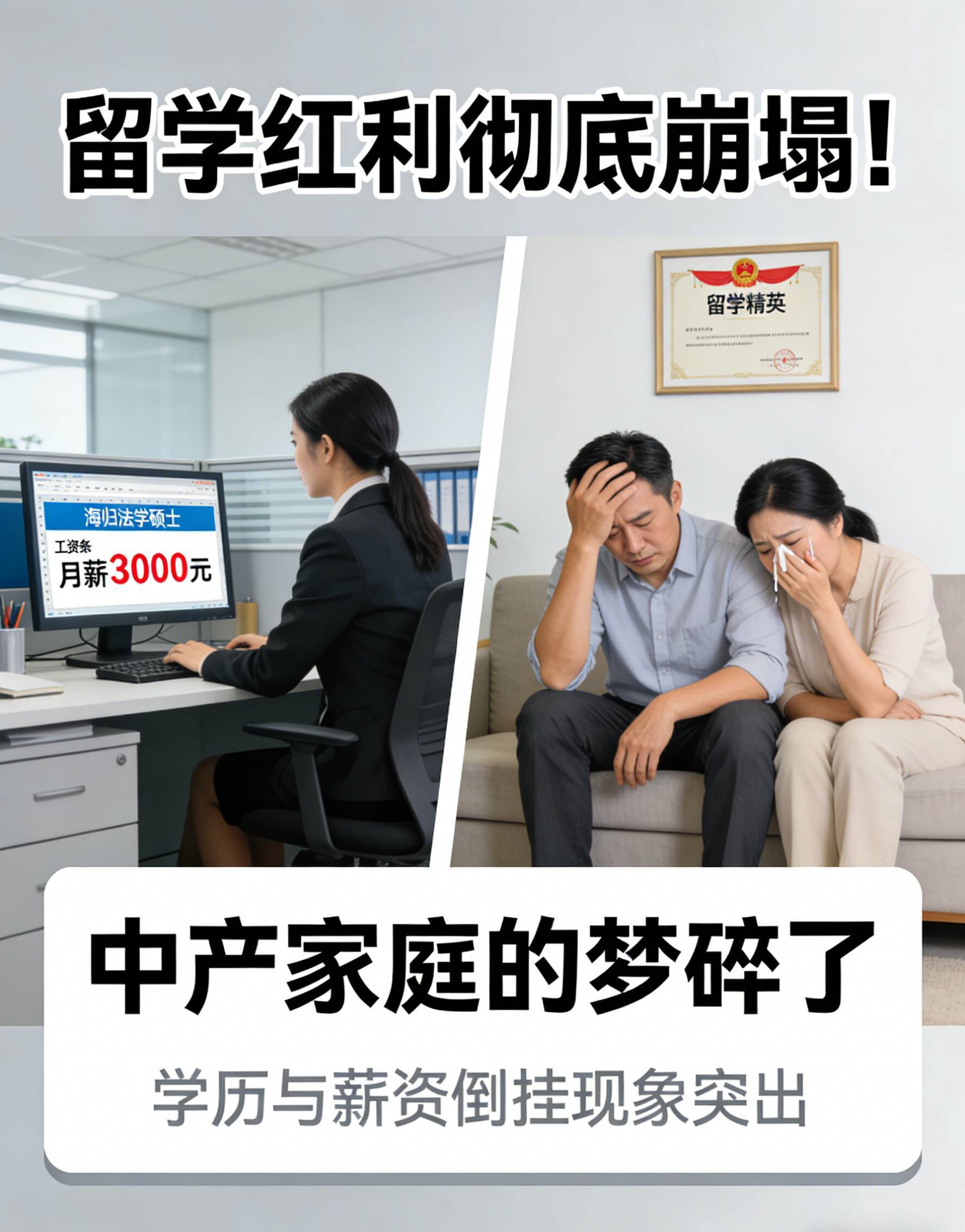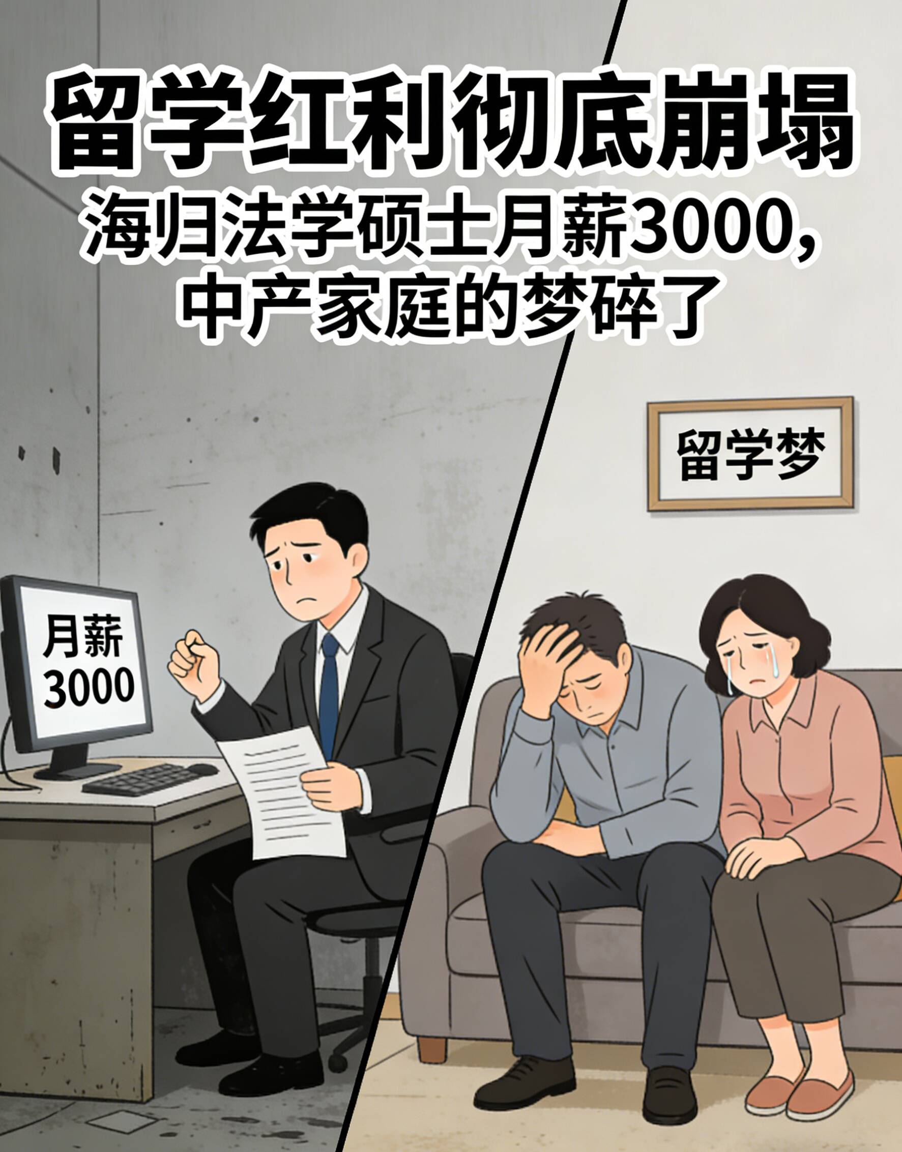 结果,孩子带回来的只是一张在大厂简历筛选中并不占优的文凭,以及一种与国内就业市场格格不入的清高。这部分家庭,最终陷入了“高投入—低回报—债务压力”的陷阱。